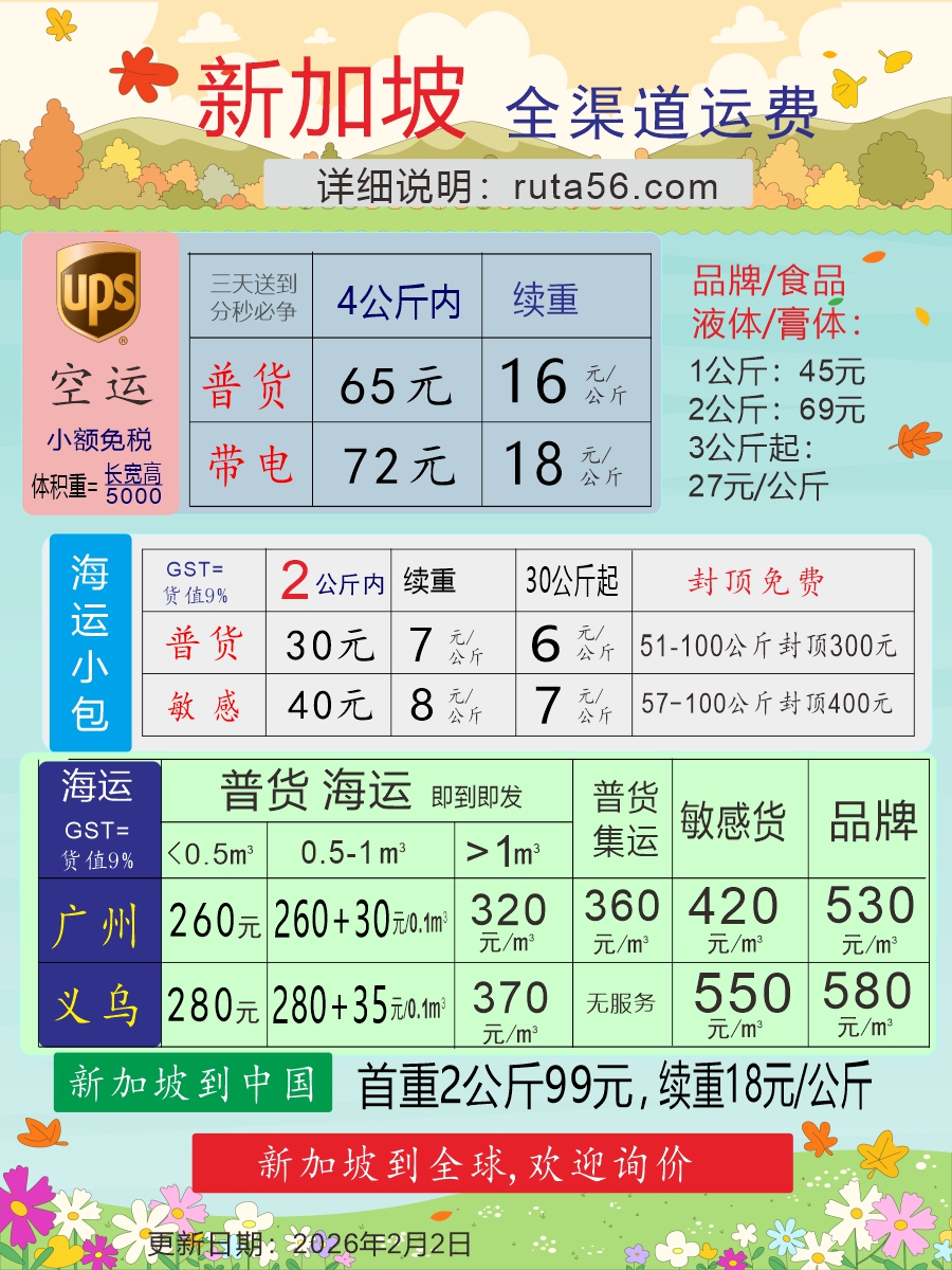 RUTA国际物流,在2026年全面升级新加坡物流服务,为客户带来更多利益: